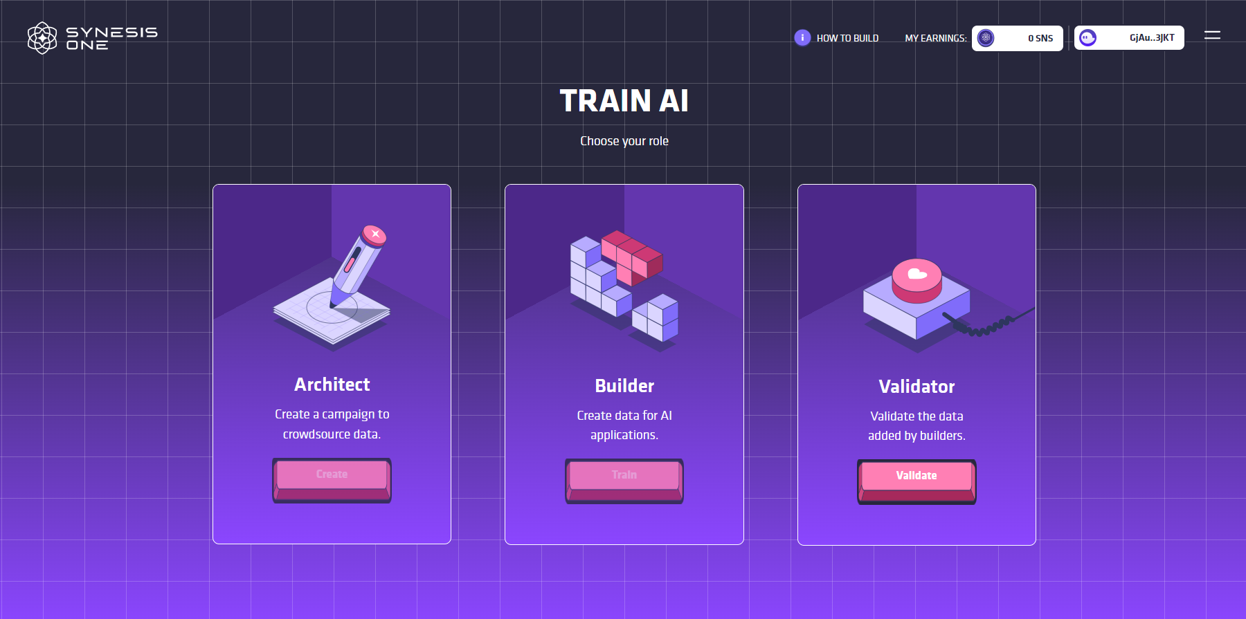 Synesis One AI 교육 플랫폼에 접속하기 전에 지갑 주소로 검수자 역할에 접속하기 위해 지갑을 설정해야 하며, 초대를 받아 시험에 합격한 사람만 참여할 수 있습니다. 지갑 설정 방법에 대한 검토가 필요한 경우 '지갑 만들기' 섹션을 참조하십시오.