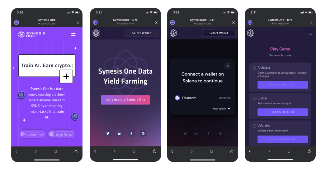 이제 암호 지갑이 있으니 Synesis One AI 교육 플랫폼에 연결할 준비가 되었습니다. train2earn에 사용할 장치에 따라 스마트폰 또는 데스크톱에서 www.synesis.one으로 이동하십시오.
